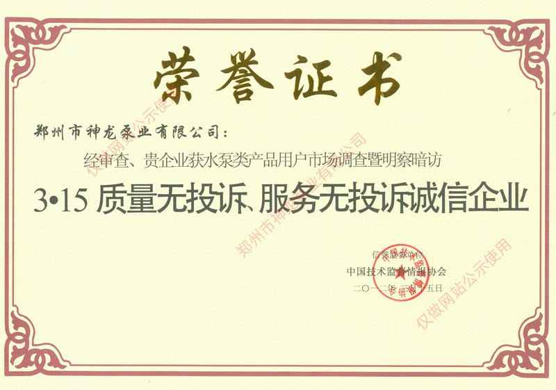 315质量无投诉诚信企业